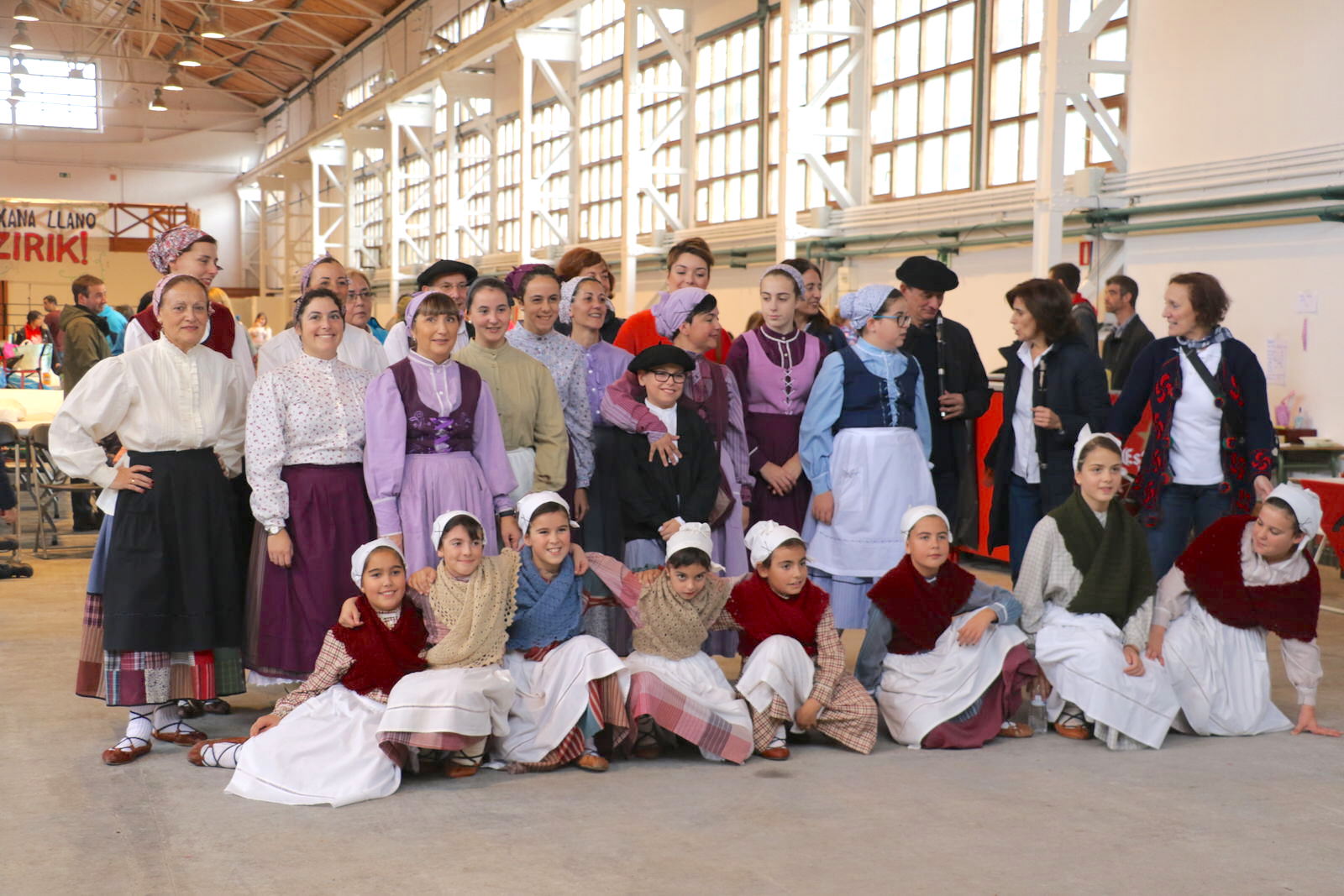 La comida ha estado precedida de un pasacalles con dulzaineros, chistularis y la Banda de Cartón, actividades infantiles y un alarde de danzas a cargo del grupo Amaia, que ha tenido que ser trasladado al interior del pabellón por la lluvia.