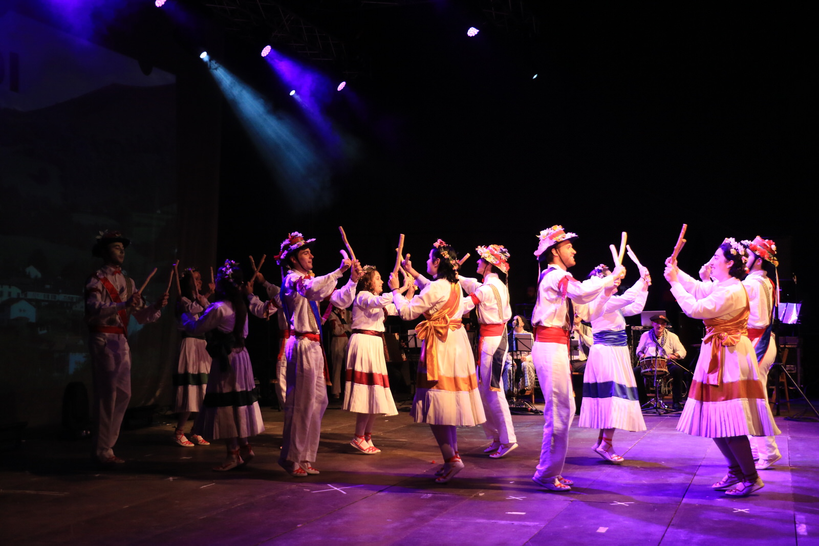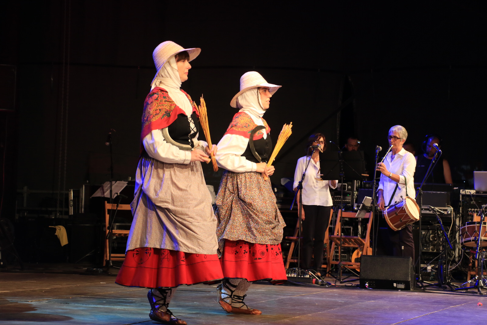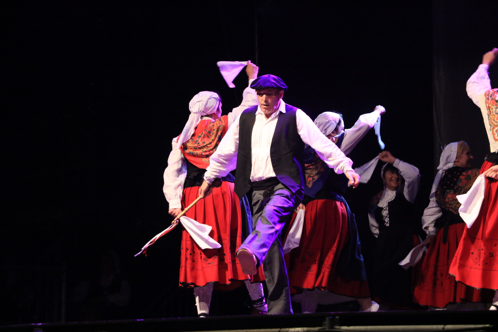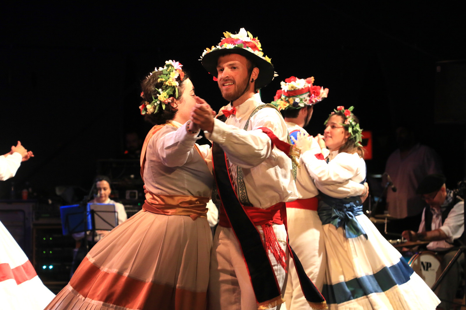 El grupo Amaia de Lutxana ha sido el encargado de abrir la exhibición con una muestra de danzas de Gipuzkoa, ‘Igitai dantza’ —un homenaje al trabajo de las segadoras— y ‘Sagar dantza’, el baile de las manzanas. Laguntasuna ha tomado el relevo sobre el escenario para representar las danzas del País Vasco francés —Lapurdi—, que, tal y como han señalado, estuvieron a punto de desaparecer en la década de los setenta.