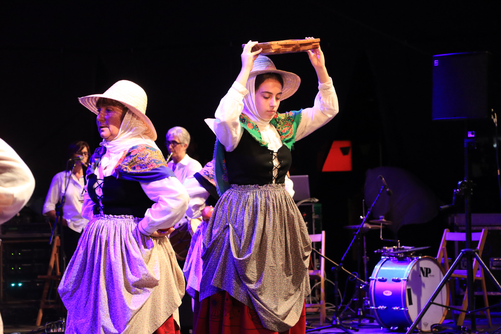 Sin la amenaza de lluvia que había obligado a suspender dos espectáculos teatrales durante la tarde, los integrantes de las cuatro formaciones han llenado de color y ritmo la noche del primer domingo de fiestas.